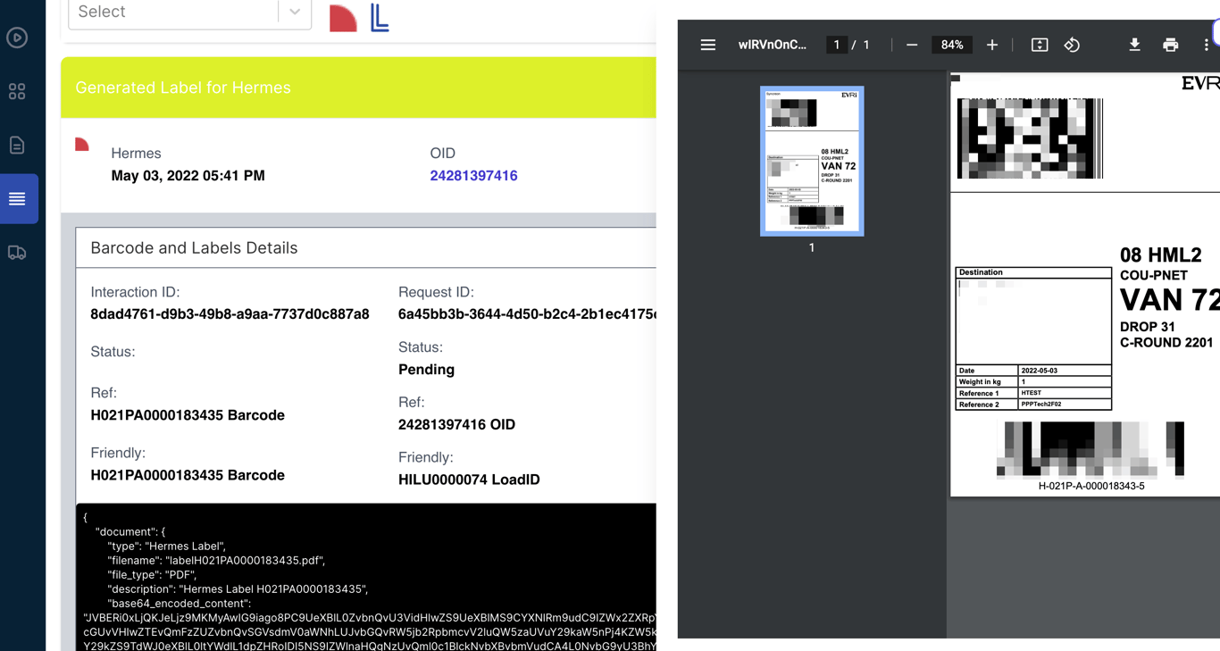 On the interactions page, if the interaction category is "document" or "Barcode and Labels" and there is content in the base64_encoded_content and the document type is zpl or pdf, then open the preview in a slideout.