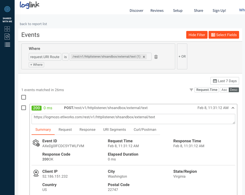 For customers utilizing loglink APIs, Logmozo can share detailed reports of requests and responses as shared reports in the portal (contact us for additional report options)