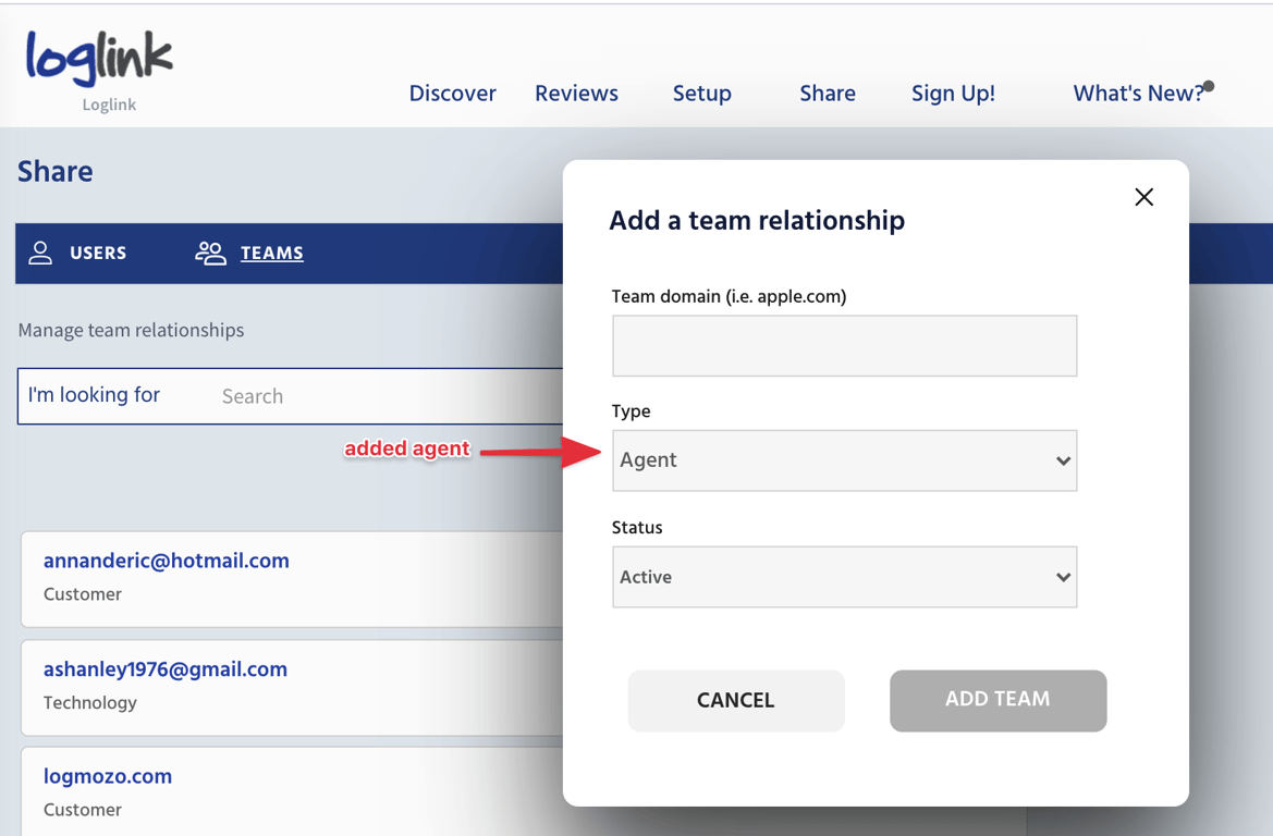 Added ability to select "agent" as a type of team relationship: