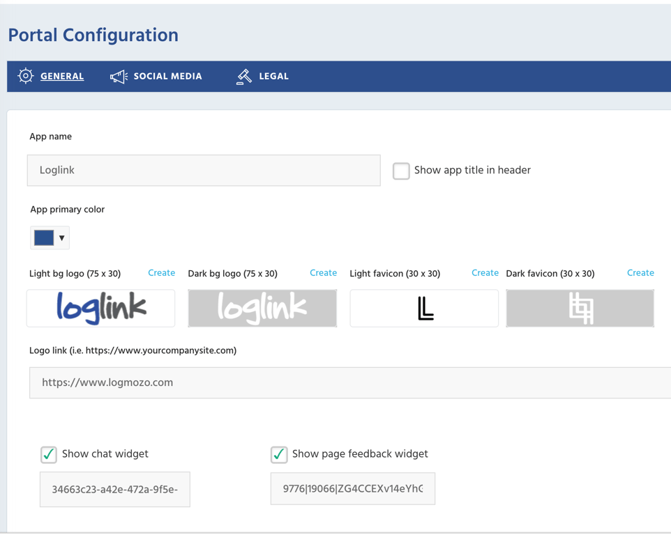 New option from setup > portal configuration to allow users to configure the chat widget and whether it's shown and the feedback widget and whether it's shown.